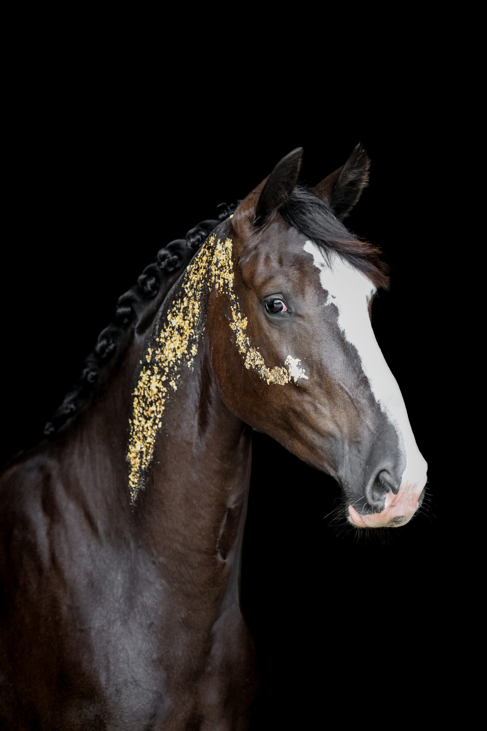 Door te werken met een volledig zwarte achtergrond komt de uitstraling, kracht en persoonlijkheid van je paard nog meer naar voren.